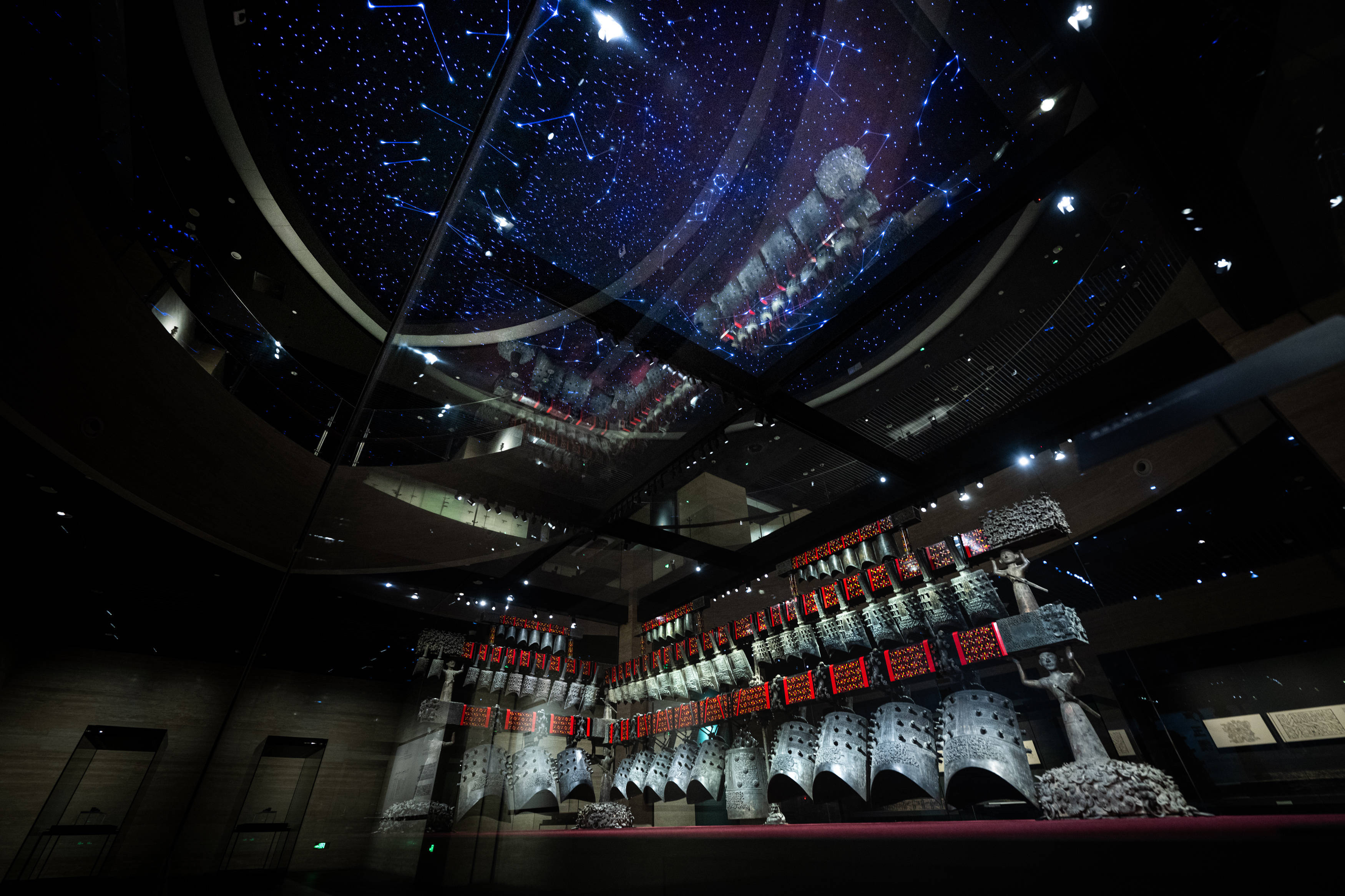 来到湖北省博物馆的曾侯乙展厅,若定睛细看曾侯乙编钟底层正中的镈钟,它器形巨大,口缘与其余编钟形制不一。这件镈钟是楚惠王熊章为曾侯乙特意制作的一件仪礼重器。