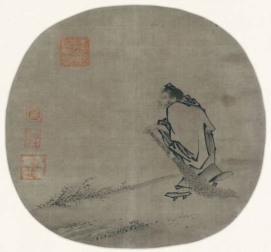 南宋画家马远的《寒山子图》,以刚毅线条勾画出唐代诗僧寒山子的纵欲形象:身披破旧僧袍,脚踏木屐,手捏竹帚,畅怀大笑于山林之间。这一画面,既是寒山子“桦巾木屐”的写实,更是马远对禅宗精神的另类解说。