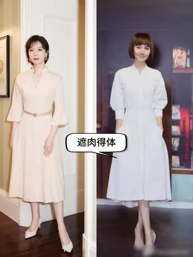 我们就来看底下这两位女明星的穿衣打扮和发型收拾案例,就不错得出一个特别明确的谜底,用一款波波头短发造型搭配上衬衫连衣裙,脚踩一对浅口的皮质单鞋,遮肉显瘦又显得很减龄。