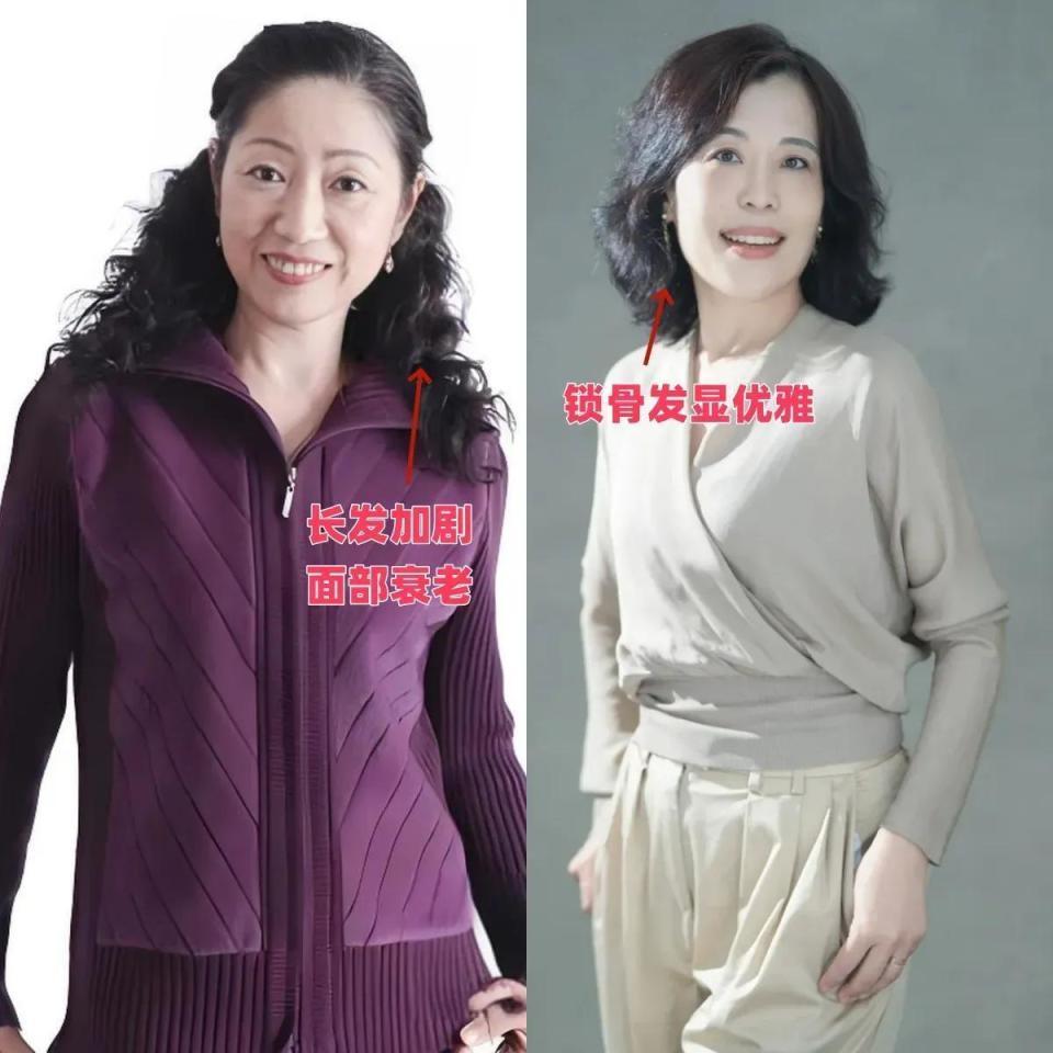正常情况下来说头发回是要作念一个纹理造型,烫一下大海浪的鬈发才会让发型更蓬松,更有纹理感,因为东说念主到中年发质会变软,变得寥落,若是两天时候莫得洗头的情况下,那头发就会贴着头皮,导致发型不够蓬松,然后就会突显出面型的过错。